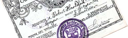 Faulhaber. Der Hochw. Herr freute sich, Pfälzer und Mitglieder des Speyerer Gesellenvereins in der ewigen Stadt zu sehen, und beauftragte uns, alle Speyerer, besonders auch den Gesellenverein zu grüßen. Wir nahmen dann an der Prozession der Münchener Männerkongregation teil. (Se. Eminenz sorgte sogar für die "Auffrischung" unserer schon etwas "abgebrannten" Reisekasse.) Nachmittags besuchten wir, um es auch bei Tag zu sehen, das Colosseum und auch noch vorhandene Kerker. Das Colosseum ist also der Platz, wo tausende der ersten Christen für ihren Glauben ihr Leben hingaben. Ebenso ergreifend für uns war die Besichtigung der Katakomben, auch eine Stätte des Wirkens, aber auch des Martyriums der ersten Christen. Am Sonntag, den 17. Mai besichtigten wir nach der hl. Messe in der deutschen Nationalkirche die Engelsburg. Von da aus hatten wir eine herrliche Aussicht über die Stadt. Nachmittags machten wir auch einen Spaziergang nach dem